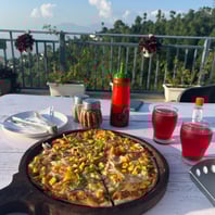 We just had wonderful conversations while enjoying the view from the extended common balcony accompanied by tea, pakodas, cookies, bananas and pizza. We read a lot about the pizza in this place and it was absolutely delicious.